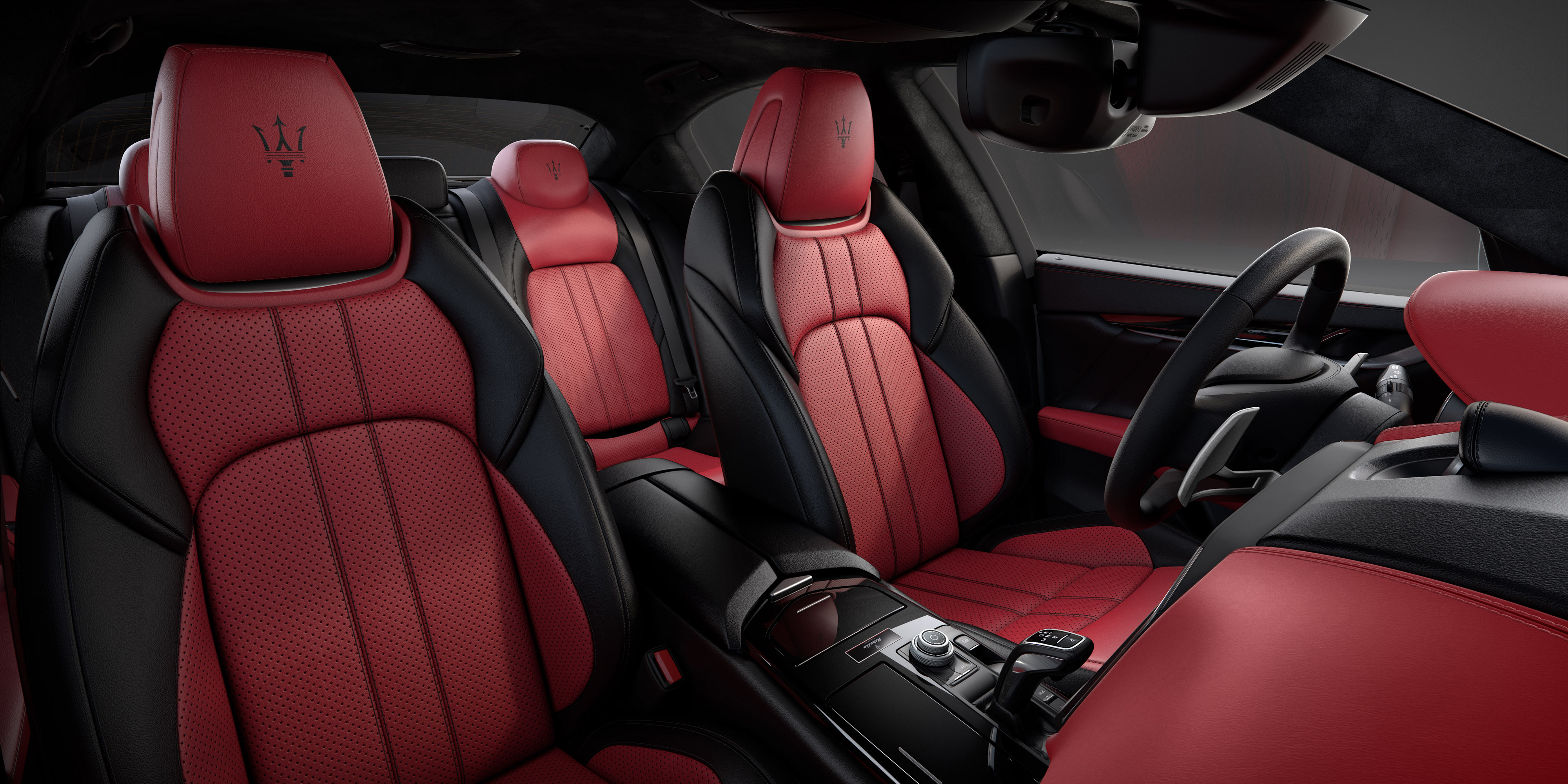 Gli interni della “Ghibli Ribelle” non sono da meno : plancia bicolore nero/rosso, pannelli porta in nero e bracciolo centrale rosso, volante sportivo in pelle nera con cuciture tono su tono, palette del cambio al volante. I sedili sportivi (con 12 memorie) sono in pelle full premium anch’essi in configurazione bicolore nero/rosso con cuciture a contrasto, disponibili esclusivamente per questa edizione limitata.