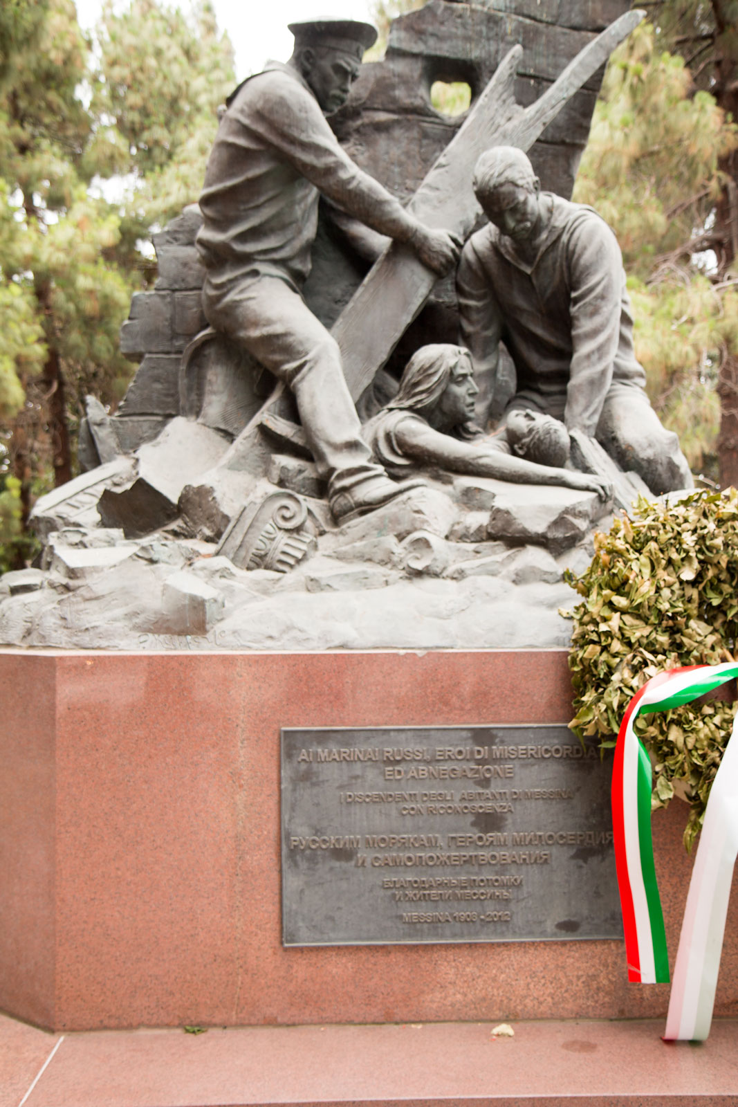 Ripartiamo dalla nostra comoda postazione e ci dirigiamo verso il monumento ai marinai russi. Sconosciuto ai più, è un riconoscimento tardivo, del 2012, ai marinai della marina imperiale russa, che furono i primi a precipitarsi a soccorrere la popolazione colpita dal terremoto del 1908. La città non celebrò mai gli eroi di quel giorno, che misero letteralmente a rischio la vita e l’episodio fu dimenticato dai più e ricordato solo da pochi. A distanza di oltre 100 anni i russi hanno pensato di onorare la memoria di quei figli lontani e cosi hanno deposto un monumento in accordo con l’amministrazione comunale per ricordare l’episodio.